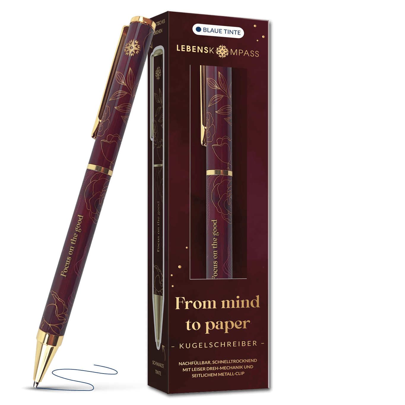 • Kugelschreiber wahlweise mit schwarzer oder blauer Tinte