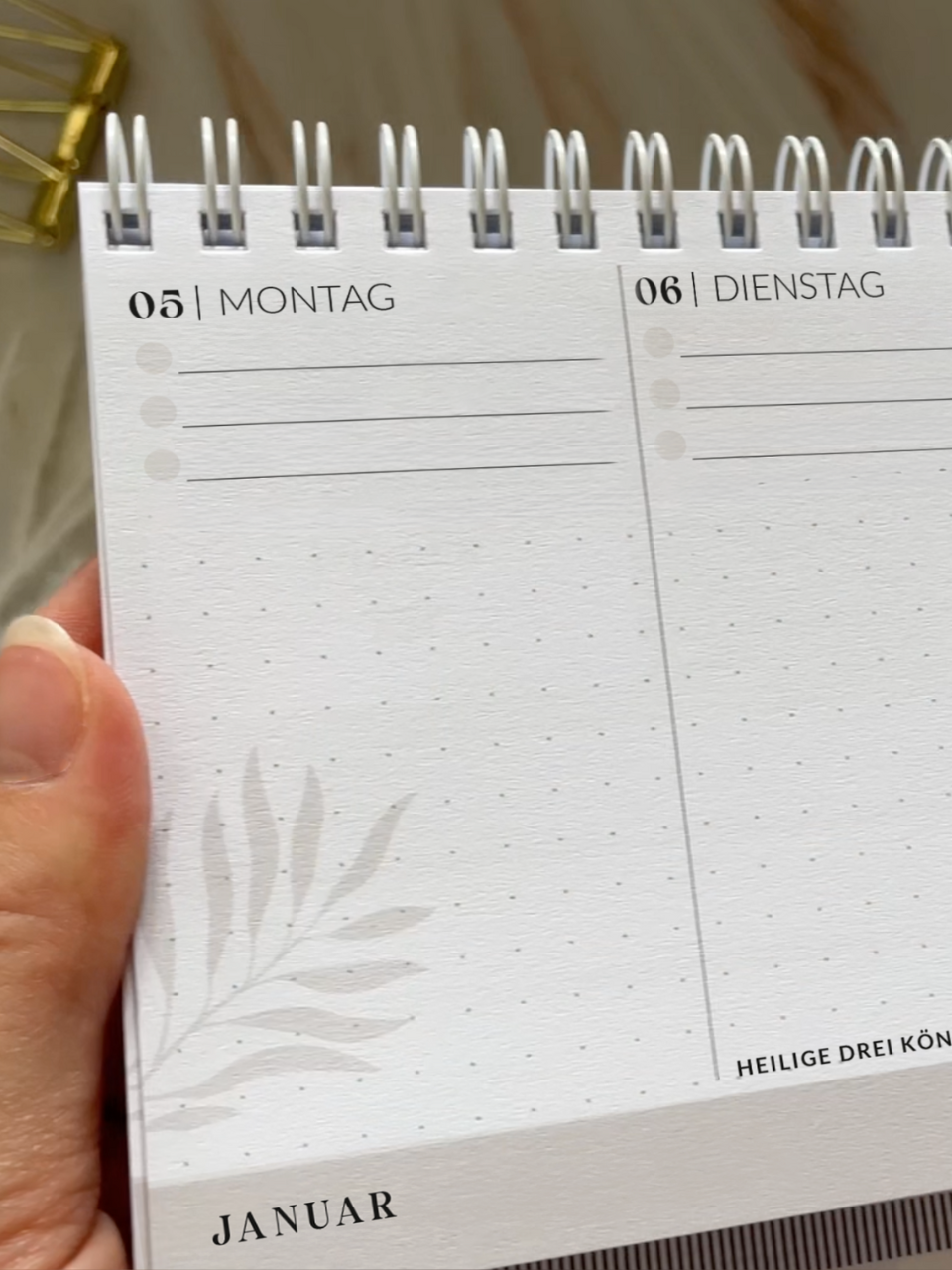 • Datierter Tischkalender für das Jahr 2026